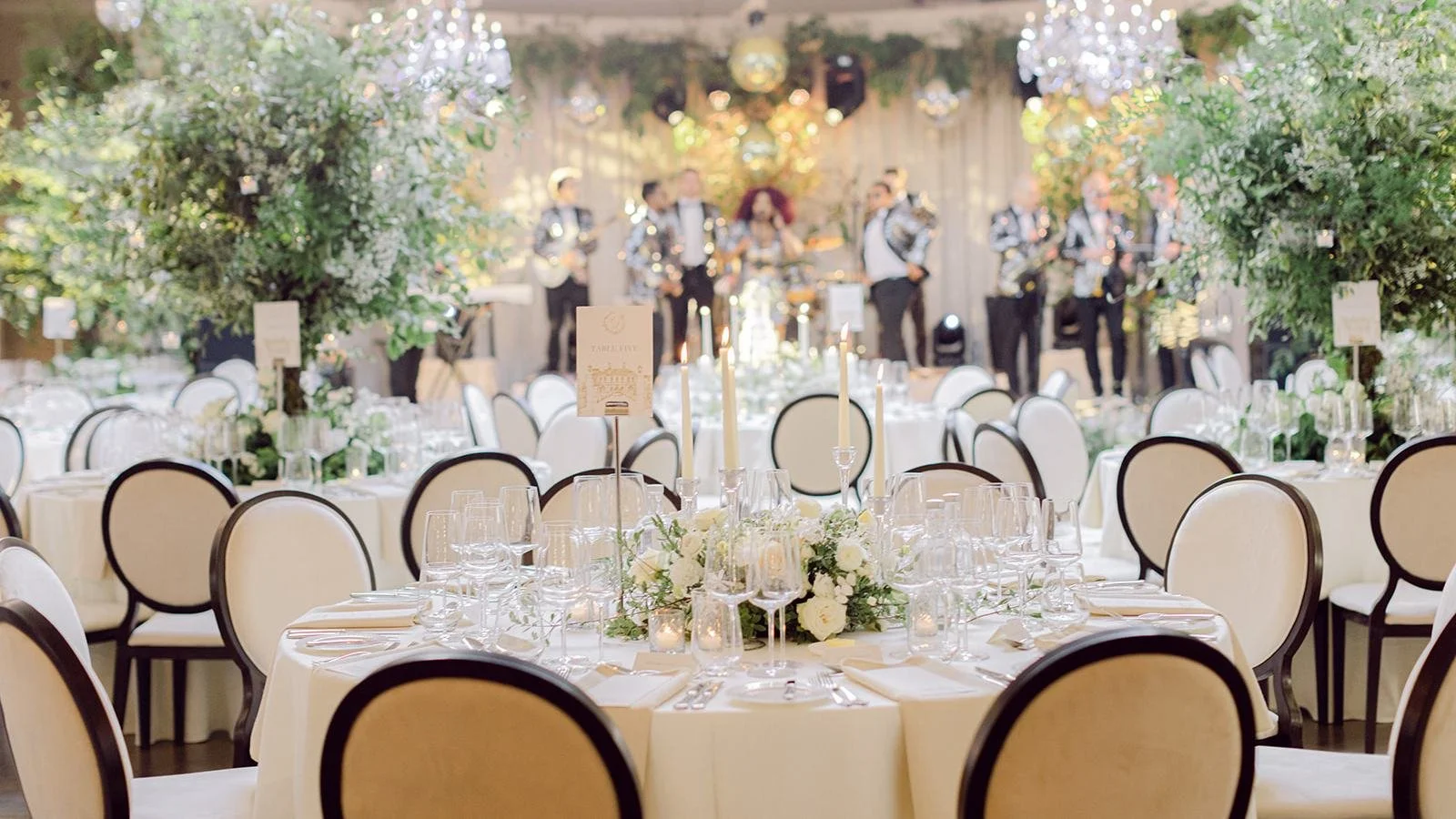 One of the most elaborate aspects of this wedding was the bespoke glass marquee. Buckley has facilitated similar requests over the years. “We were once asked to create a Midsummer Night’s Dream-inspired celebration, complete with Celtic symbolism, fairy folklore and set within a bespoke glass marquee. Costs can vary significantly, but a glass or orangery-style marquee represents a significant investment because beyond the aesthetic elements like lighting, staging and furniture, there are essential infrastructural requirements: satellite kitchens, power, plumbing, bathroom facilities and sometimes scaffolding, depending on the site. Prices typically start at €250,000 and increase based on scale, guest numbers and overall design ambition.”
